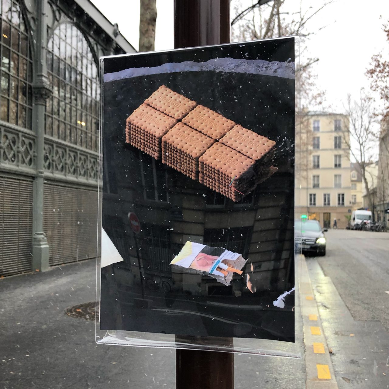 The idea for The pole gallery Paris cropped up in what seems today like a faraway moment in time, 2020, when we were all locked away in our homes and barely realised how much we all missed each other, being outdoors and crossing paths with strangers. I reached out to Orfeo Tagiuri – who had first launched the gallery in London in 2019, and we agreed to have a Paris pole gallery in Carreau du Temple, in Paris’ 3rd arrondissement. Like the London pole gallery, it simply consisted of an A4 plexiglass frame fastened to a street pole, where each artist would be presented for 10 days.