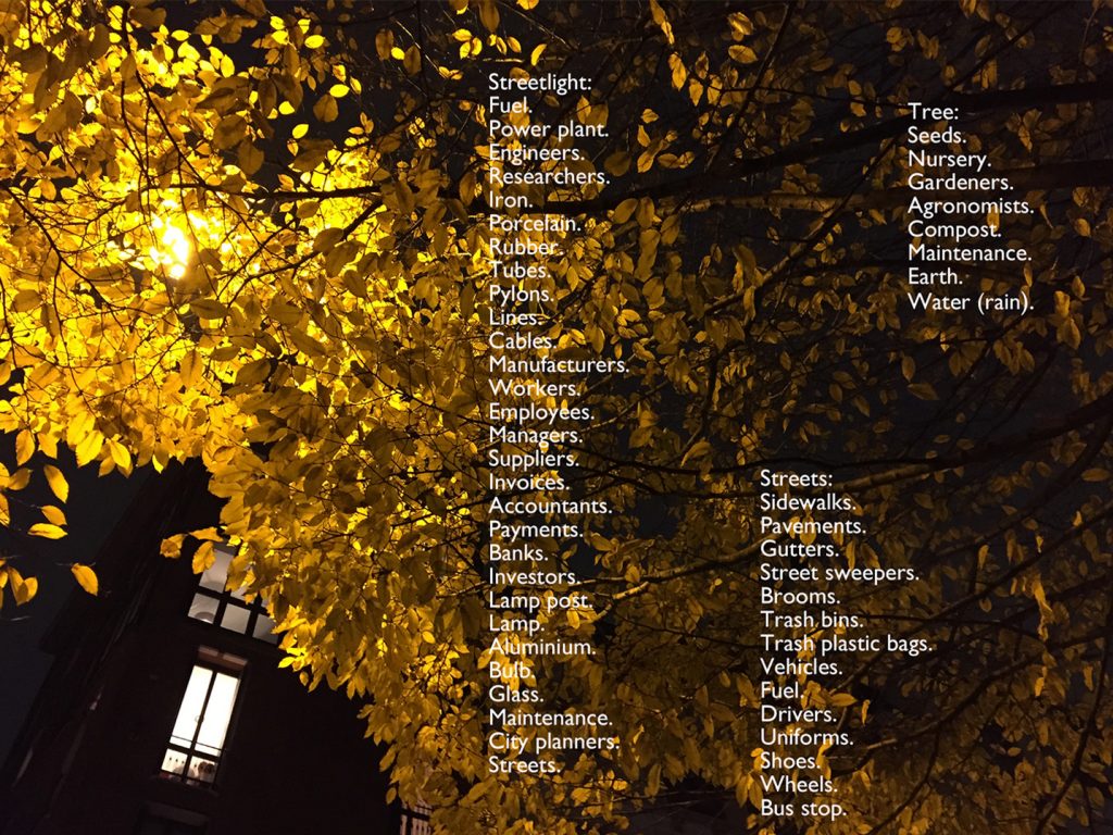 I focus on economy since when I got angry with finance. Then I understood that economy is my concern, that it concerns everybody. So I started studying, and seeing economy in everything I do and see. Take this bottle, for instance. Two different kinds of plastic, water, label, print, glue, etc. Or take my backyard, instead, where I see houses and consequently people (they are hidden, but they are there), and jobs, and the sky, which is nature, but… What is really natural today? Everything is a network of relationships, especially economic ones: a grid of economic connections. Like meridians and parallels, and like them, invisible. As for the effect of my work on society, only a few people have seen it yet. I would need someone who believes in what I do, and willing to support me. Just like that, uh?