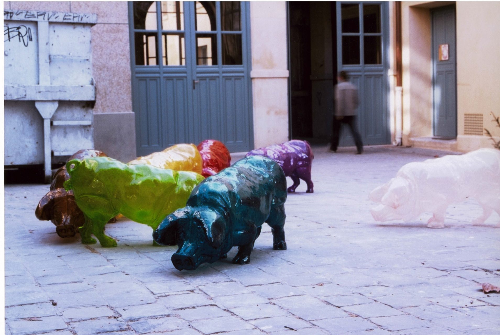 ” 7 COCHONS ” Colorants et résine, mesure d’un élément 70 x 50 x 90 cm, 2001-2004, ENSBA