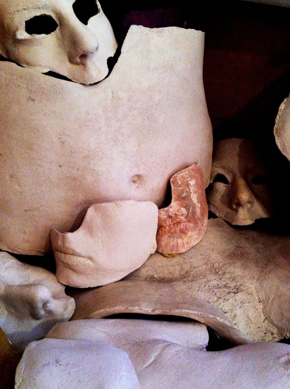 “AUTO-PORC____” Tirages en terre cuite à partir d’un auto-moulage découpé en 7 parties, 2008 © Delphine Monnereau