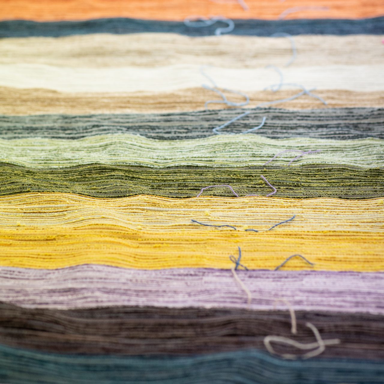 I have not really learnt the tricks of the trade as I don’t want to be limited by the technicalities of weaving. My training was done naturally, through encounters which showed me different parts of weaving. My asset is not my technical skills but rather my colour expertise, my sense of materials and my love for texture. Collaborating with weavers allows my artistic vision to come to life.