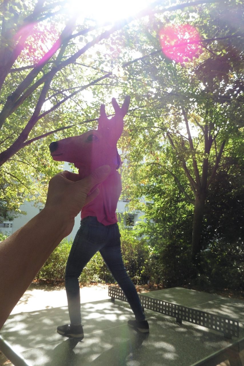The workshop Imagine, led by Myriam Tirler and Alexandra Roudière, is pne of the activities planned as part of the training programme for childcare assistants. The goal is to accompany participants in the enhancement of their self-image through bodily experimentation, and to have a positive collective experience. The workshop mixes performance with photography, and proposes the creation of a triptych of images, allowing the participants to talk about their history through objects, and to question the representations of their experience. The making of amulets and lucky charms in natural materials symbolizes both the gesture of care and the benevolent approach, and indirectly questions the basics of the profession.