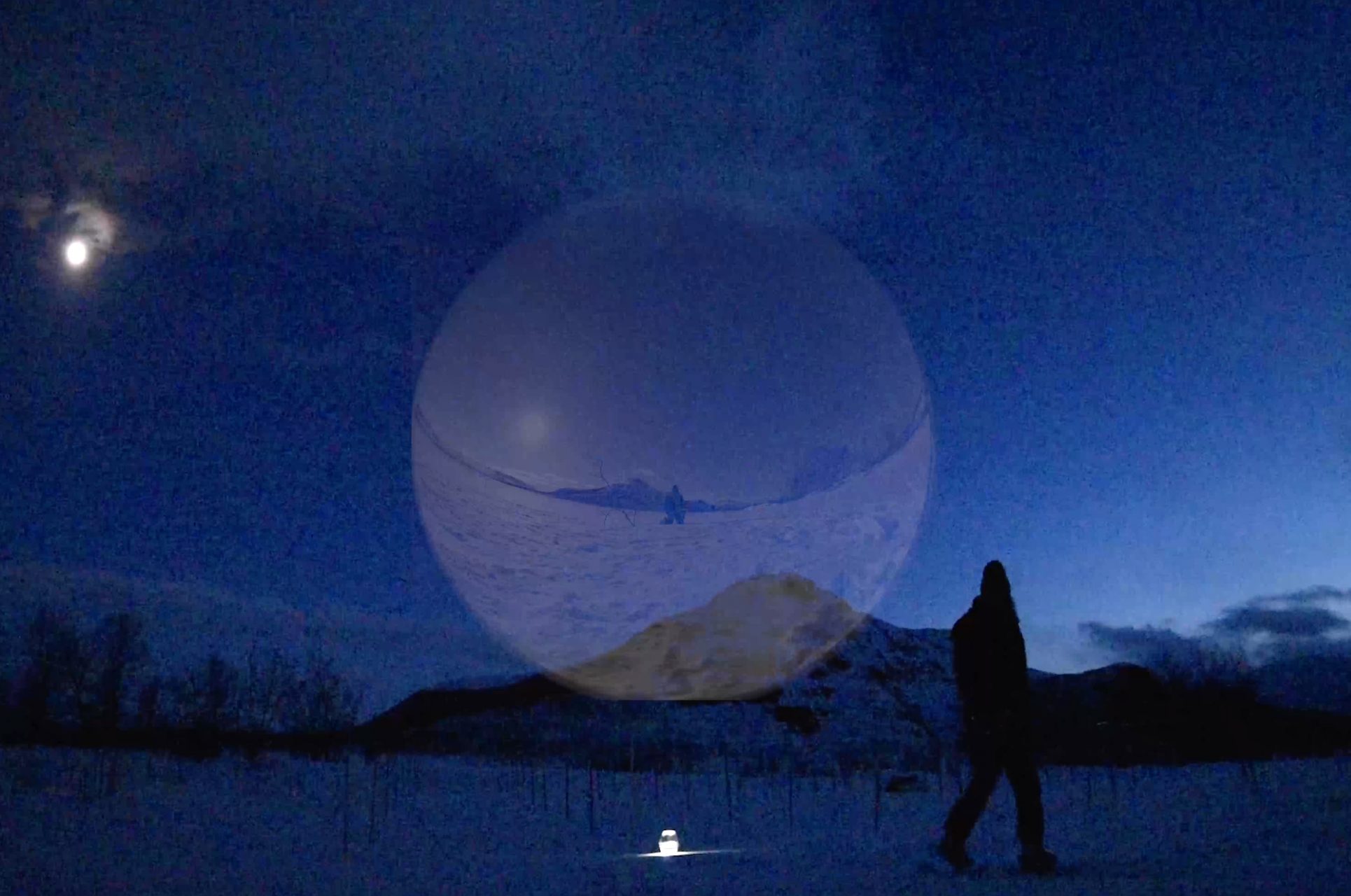 This video work incorporates a series of in-situ gestures carried out by Taylor at the Kilpisjärvi Biological Station in the arctic circle (Lapland region, Finland), during the Ars Bioarctica residency program, run by the Bioart Society and the University of Helsinki. She places an illuminated orb, resembling the moon, sun or perhaps another star, in front of an array of antennae, which are actively recording cosmic noise (VLF or “very low frequency” recordings of electromagnetic activity of the Earth’s ionosphere and magnetosphere provided by the Finnish data center KAIRA (Kilpisjärvi Atmospheric Imaging Receiver Array), located where the video work was filmed). The viewer is invited to observe the artist’s gestures as if through an oculus, which re-appears throughout the duration of the video: a spherical 3D camera was used to film Taylor composing a series of sun, Earth and moon dials in the tundra. She uses birch branches as the dials, and petri dishes to mark the 12 hours, 12 months and 8 phases of the moon, respectively. (Each petri dish contains a “bacteria print”: a living photographic image generated using samples of photosensitive bacteria collected in the tundra.) Interwoven into the cosmic noise is Christopher’s voice, reciting a poem written in response to Taylor’s experiences and heir own perceptions of the moon and cosmos. These gestures, words, and sounds reveal an attempt to mediate interspecies communication, to share lived experiences on contrasting microbial, human and cosmic scales of time and space.