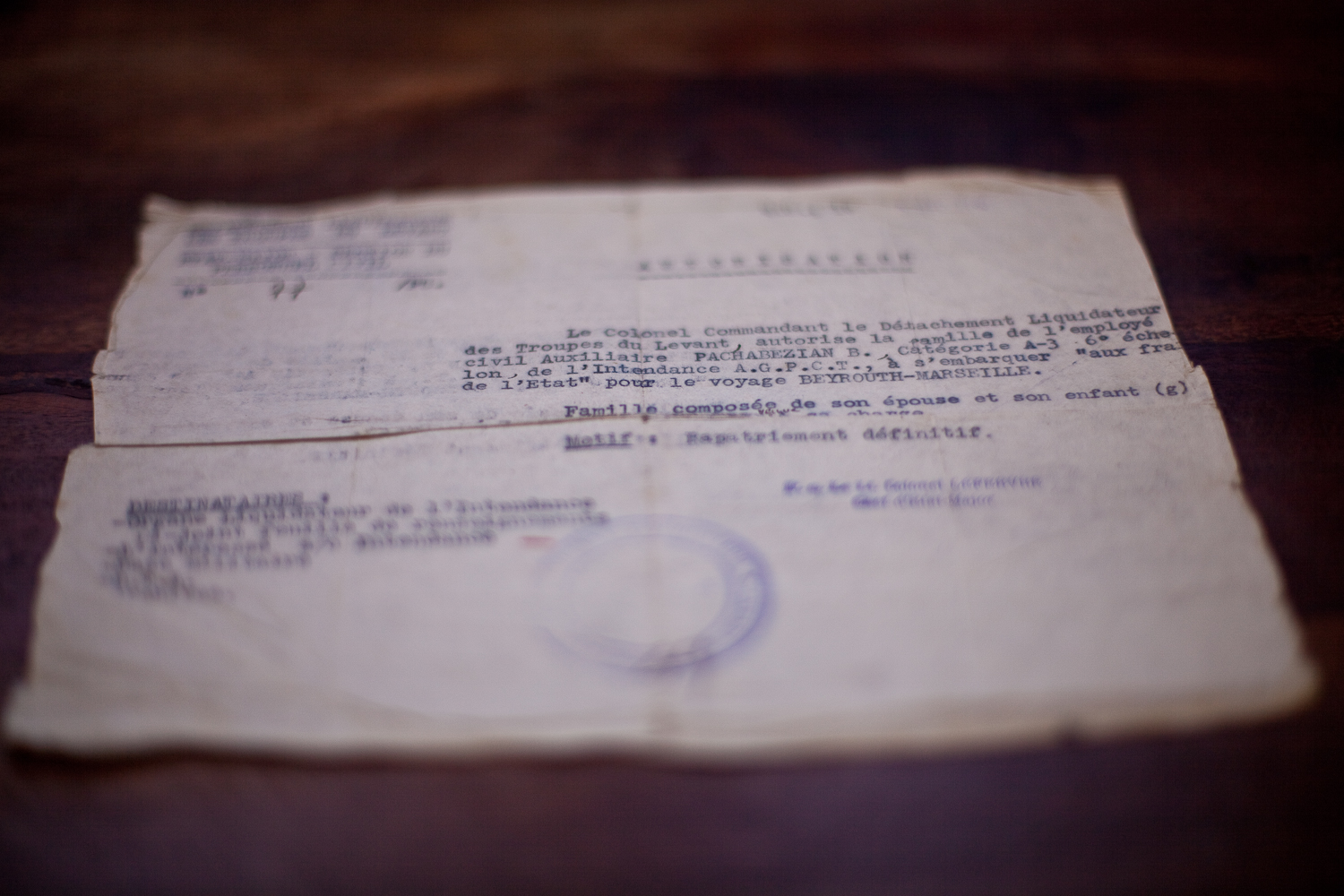 A document dated 1946 authorising my grandparents to embark on a boat to make the Beirut-Marseille journey.