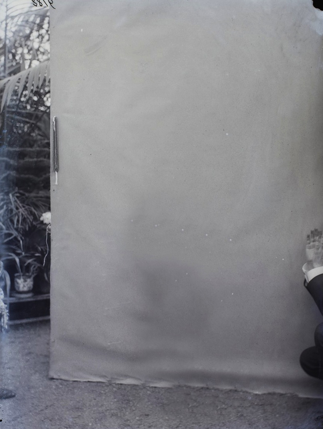 Silver bromide gelatine negative on glass plate turned positive.