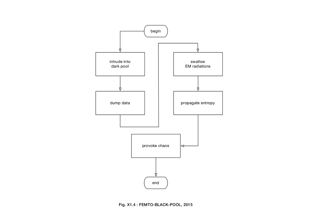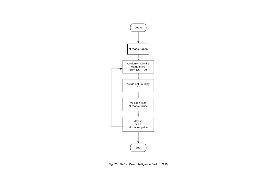 这张图中的演算法结构凸显了演算市场的暂时性和高度投机性特色,这个市场的股票有时只有几微秒的时间,而且对演算法的未来学痴迷,演算法不停重复过去的形式以创造未来,并导致黑天鹅效应和闪电式崩盘的出现7。