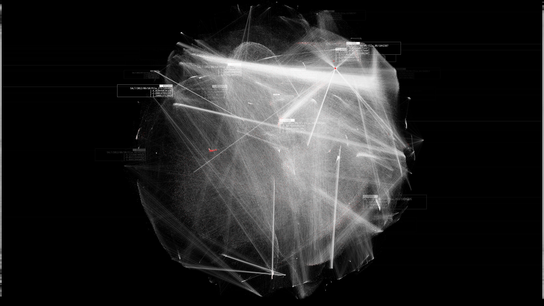 Peu de temps après avoir reçu la commande artistique de SALT, Anadol est devenu artiste-résident au sein du programme Artists and Machine Intelligence de Google, où il a pu collaborer avec Mike Tyka afin d’explorer des technologies de pointe au sein du domaine de l’Intelligence Artificielle dans un environnement rassemblant artistes et ingénieurs. Développée au cours de cette résidence, Archive Dreaming a transformé l’espace de galerie du 1er étage de SALT Galata en un environnement enveloppant où histoire et temps présent s’entrelacent et où l’introduction d’algorithmes d’apprentissage automatique vient bouleverser et mettre à l’épreuve les notions traditionnelles des archives.
