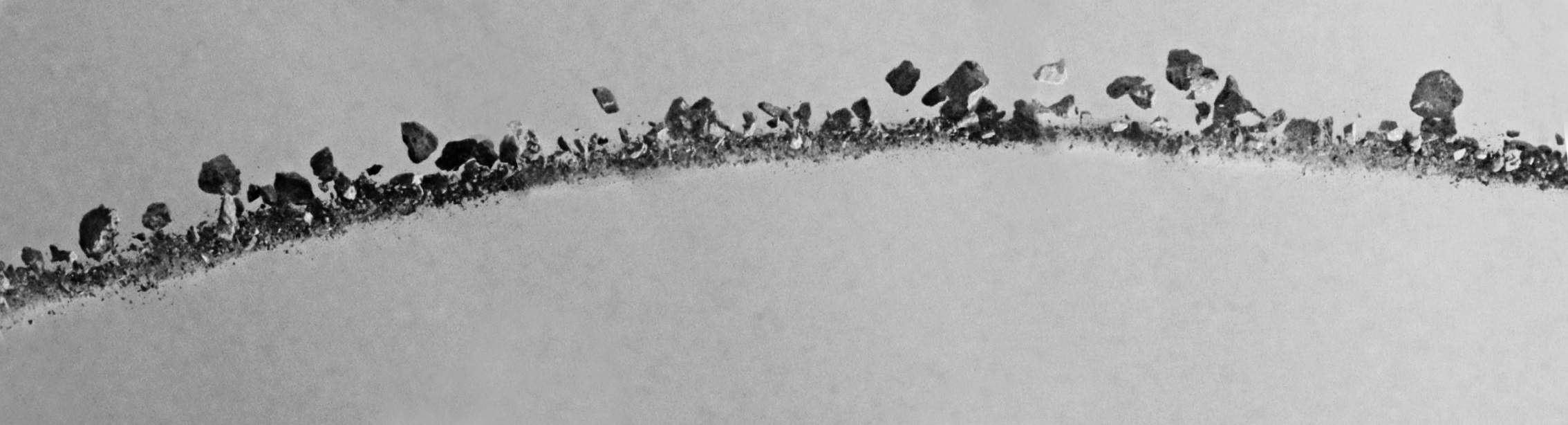 Drawing: “Stone, Wheat, Stone” (Dessin : “Pierre, blé, pierre”) est le voyage de pierres qui volent dans le vent et atterrissent dans un autre endroit, mais dans leur chute au sol, dans le bruissement des lignes, elles créent un nouveau paysage.
