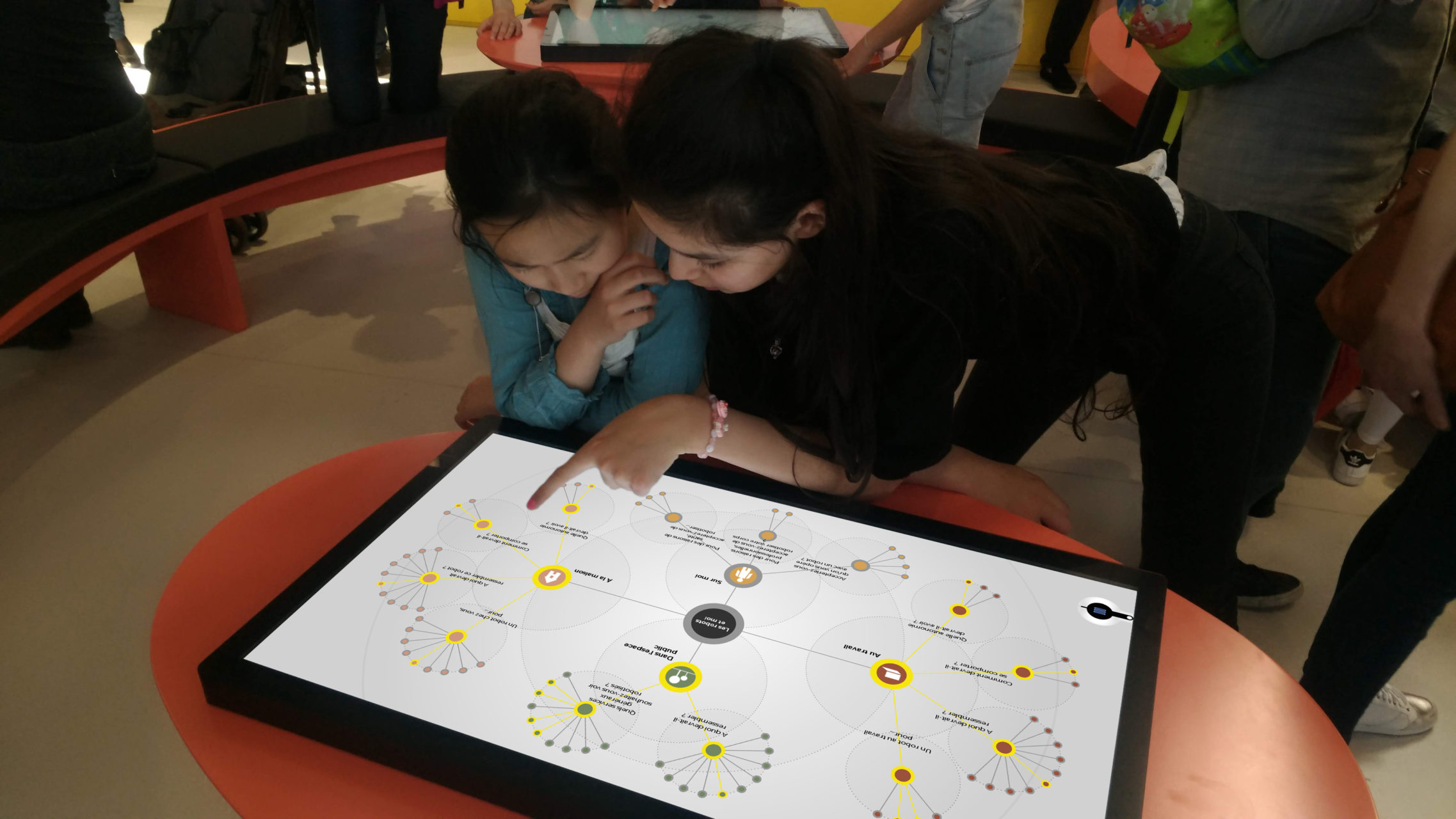 L’exposition devient alors une forme originale d’expérience collective au sein de laquelle chacun peut se situer dans son rapport au contenu abordé. Deux enjeux majeurs s’en déduisent pour le designer du dispositif multimédia : la nécessité de cadrer des algorithmes pour lesquels il ne connaît pas par avance les réponses du public et le risque de voir le système de visualisation de données produire ses propres artefacts, c’est-à-dire des figures graphiques davantage liées au système de représentation lui-même qu’aux caractéristiques des réponses du public de l’exposition.