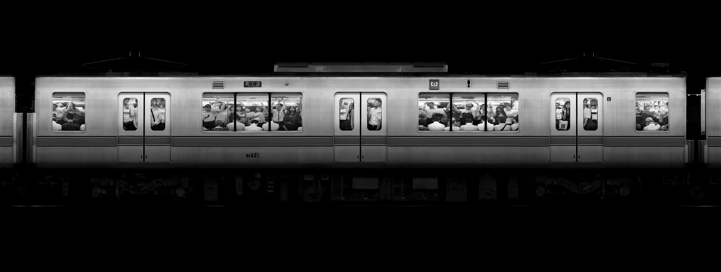 En nous rapprochant du sens restreint et original de Big Data, nous pouvons mentionner une autre de ces importantes connections au monde des arts – ces œuvres, contemporaines en particulier, qui contiennent et font usage d’une grande quantité d’information visuelle et/ou digitale et leur élaboration. Certaines d’entre-elles sont créées avec des techniques et des médiums qui semblent désormais classiques, comme la photographie argentique. Pensez, par exemple, à la série fascinante de Hiroshi Sugimoto dans les cinémas, où le temps d’exposition est le même que la durée du film et où, au final, la photographie, si elle n’est qu’un écran lumineux, «contient» néanmoins l’intégralité du film. Un autre exemple, cette fois créé par le biais de la photographie numérique, est la série Stainless d’Ádám Magyar dans laquelle l’artiste collecte méticuleusement une quantité énorme de données numériques avec son appareil pour la création de chaque pièce, en « scannant » les métros sortant d’un tunnel grâce à une technique spéciale qu’il a développée, et dans laquelle au final le résultat apparaitra avec un rendu apparemment stérile, pur, mécanique, qui réussit même à analyser poétiquement différents aspects de la réalité urbaine contemporaine par le biais de détails haute-résolution.