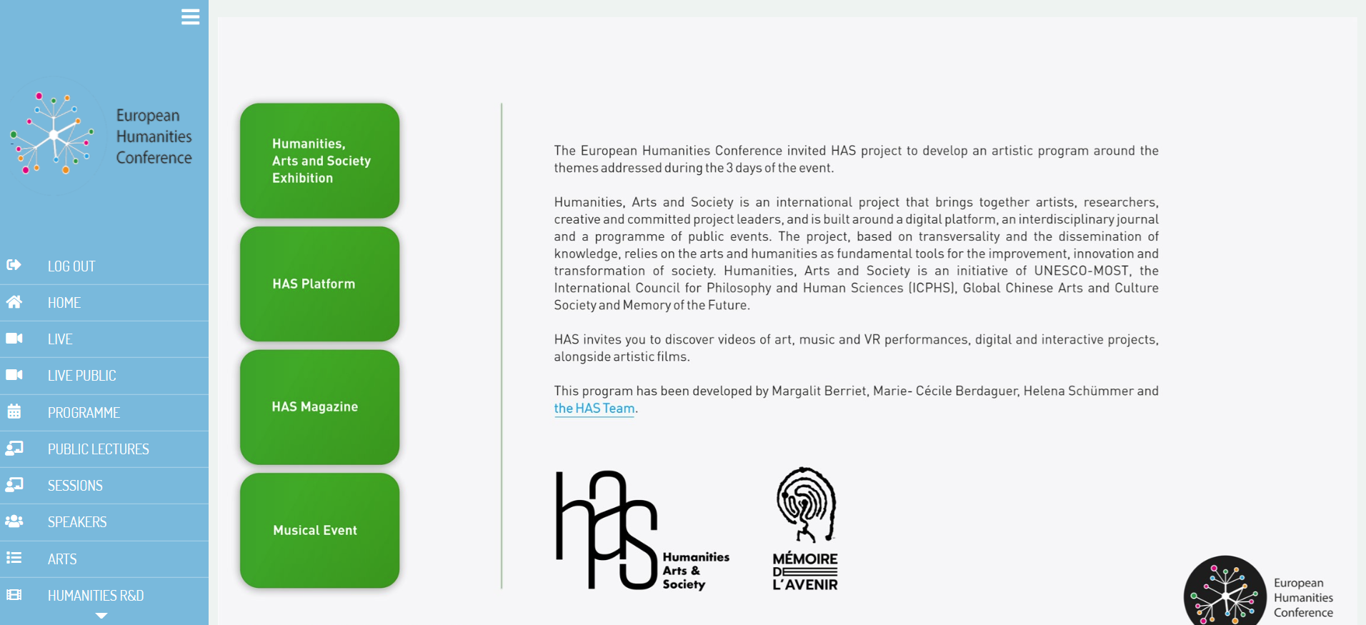 En mai 2021, la Conférence Européenne sur les Sciences Humaines, European Humanities Conference, qui se déroulait en ligne et à la Fondation Gulbenkian à Lisbonne, au Portugal, a invité la HAS à créer le programme culturel de l’événement.