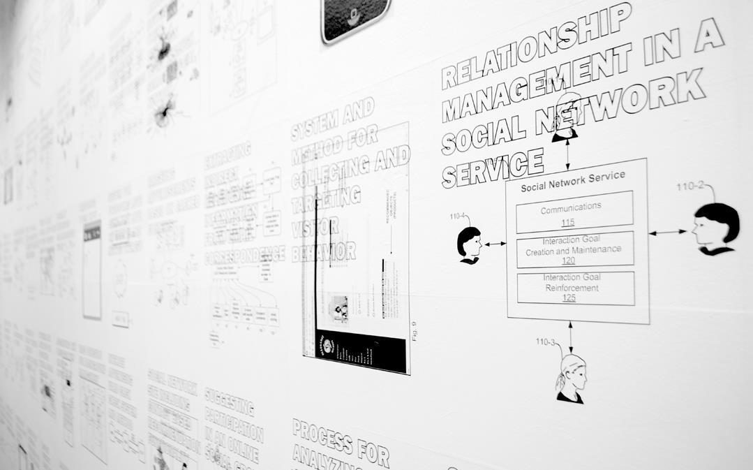 L’œuvre conceptuelle Sociality regroupe plus de vingt mille brevets d’interfaces, d’algorithmes, d’appareils et de plateformes en ligne. C’est en consultant les archives publiques des dépôts de brevets que l’artiste Paolo Cirio a pu documenter des technologies au service du contrôle social, de la manipulation et de la surveillance à l’œuvre sur internet.