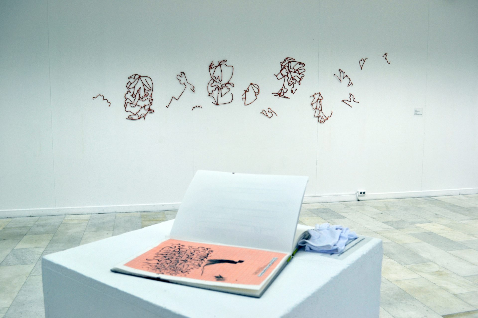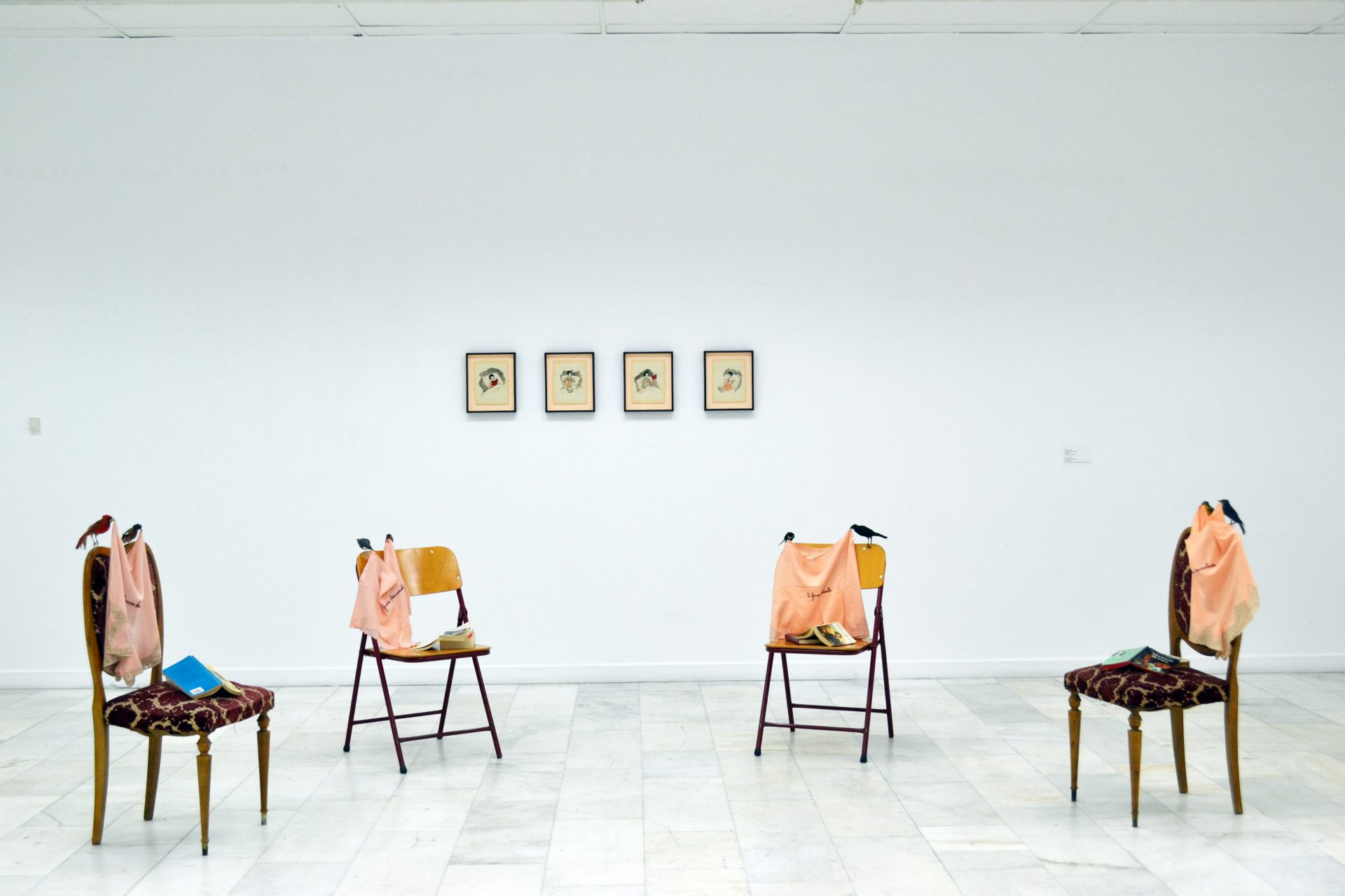 Lors de l’exposition « Voyage Around My Room » à Athènes, les quatorze artistes et écrivains participants ont été invités à aborder à travers leurs œuvres les notions clés de l’essai « Une chambre à soi », en utilisant des médias allant des assemblages, installations, dessins, sculptures et textes aux vidéos et œuvres virtuelles. Commentaires collectifs sur la notion de chambre et l’héritage féministe de Virginia Woolf, les œuvres abordaient des sujets tels que les stéréotypes de genre, l’espace privé et le temps personnel, la domesticité, l’angoisse adolescente, l’isolement, ainsi que les relations interpersonnelles et l’identité publique à l’âge des médias sociaux.