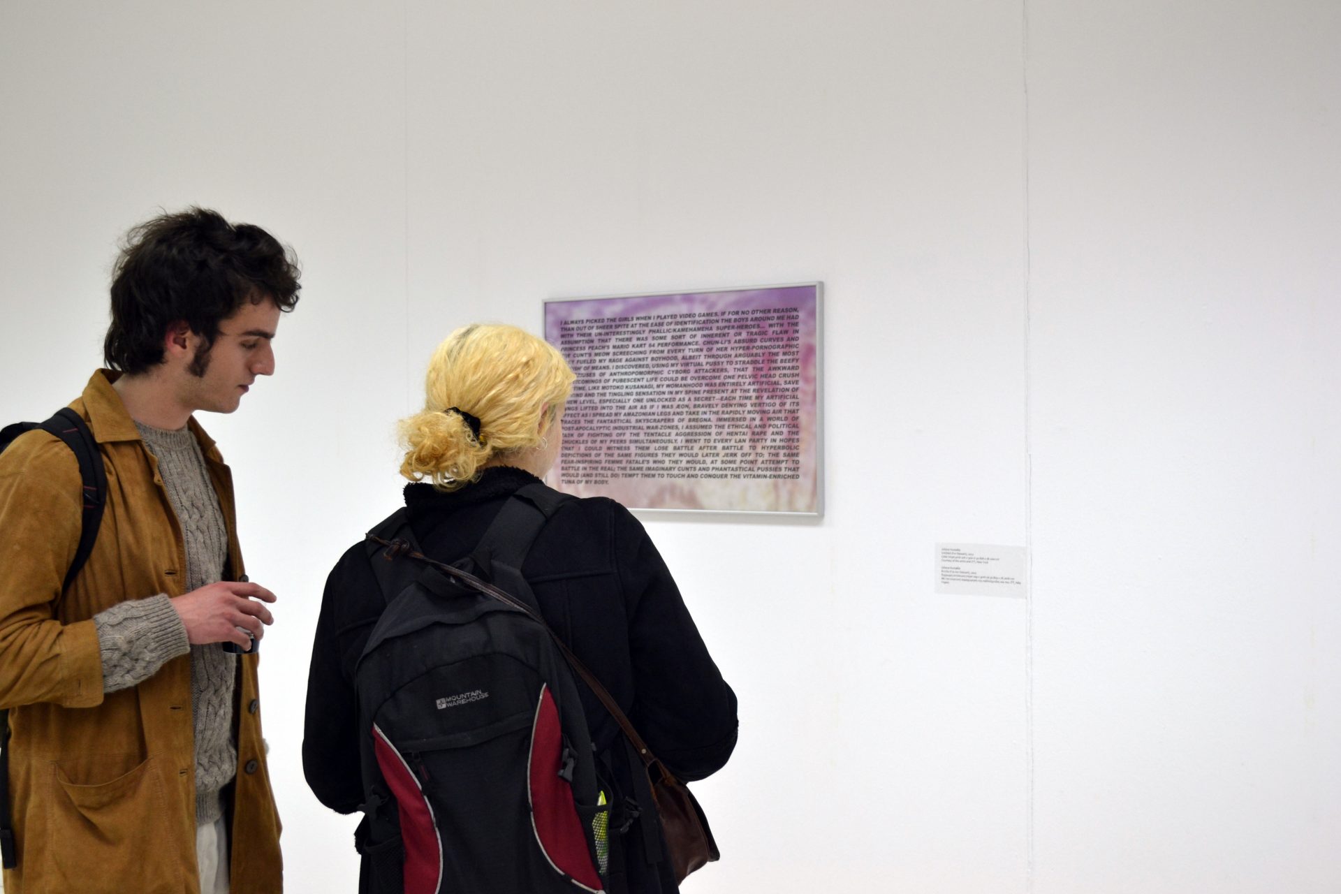 Dans son œuvre « Sans nom (Pour Samuel) » [Untitled (For Samuel), 2012], l’artiste visuelle Juliana Huxtable présente un commentaire sur l’aliénation et le sexisme dans les jeux vidéo (auxquels on s’adonne bien souvent dans l’intimité de nos chambres) et sur son enfance en tant que femme transgenre. La réalisatrice et universitaire Eva Stefani a présenté « La boîte » (The Box), un film qui raconte la vie d’une vieille dame apparemment isolée dans son appartement – une femme solitaire dont le seul ami semble être un présentateur du journal télévisé qu’elle regarde religieusement chaque soir dans sa « boîte à images ».