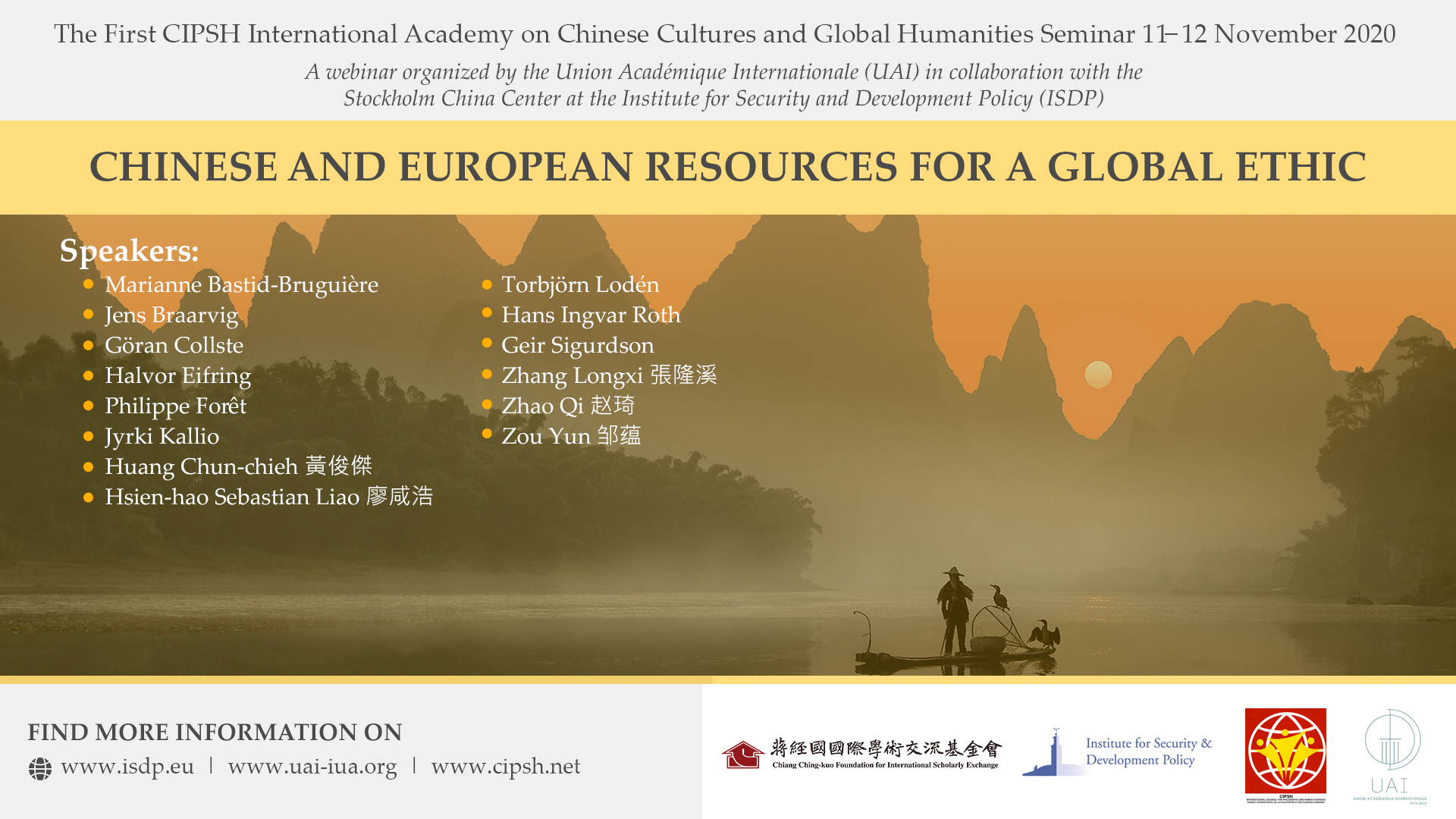 The webinar is organized by the Union Académique Internationale (UAI) in collaboration with the Stockholm China Center at the Institute for Security and Development Policy (ISDP) in Stockholm.
