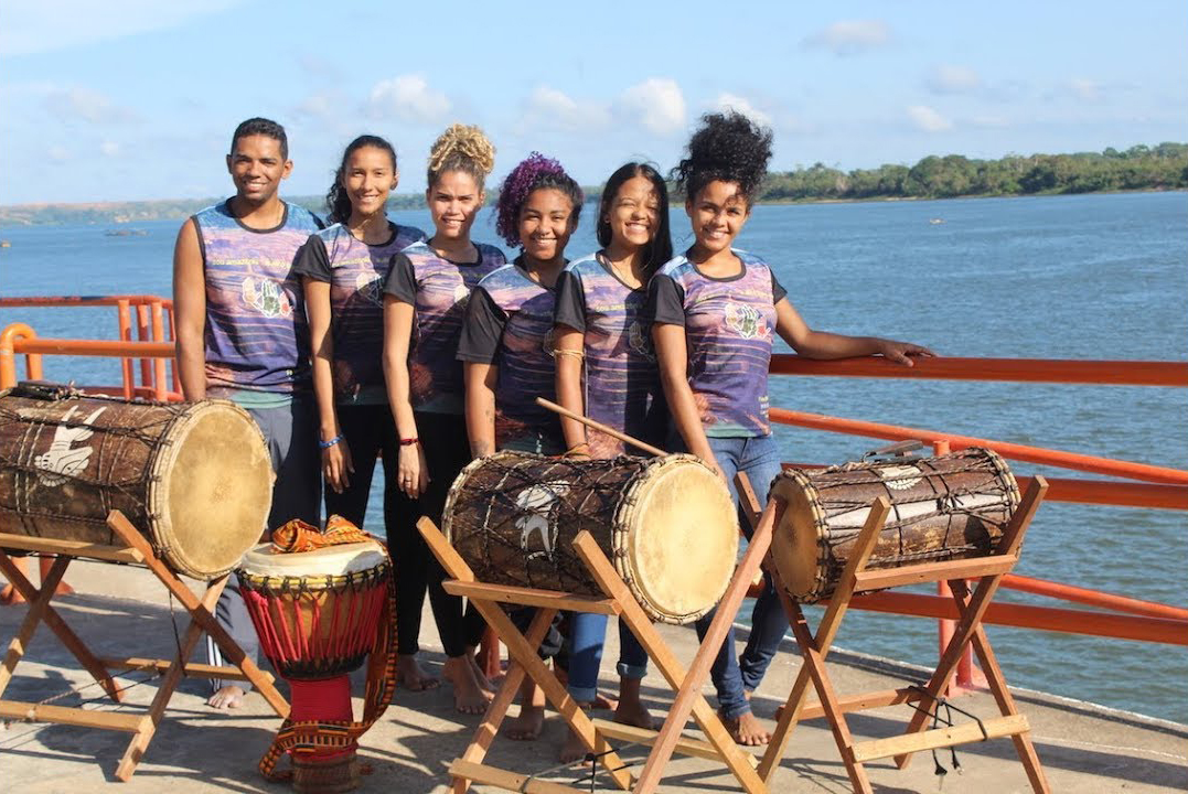 AfroRoots Collective cleans fish and washes clothes on the bank of the River Tocantins in drought. They begin to rehearse for the kite festival performance in the afro-indigenous community of Cabelo Seco. A child steps out of a Dunun drum skin, claps her hands in delight and discovers the power of her imagination and of performance.