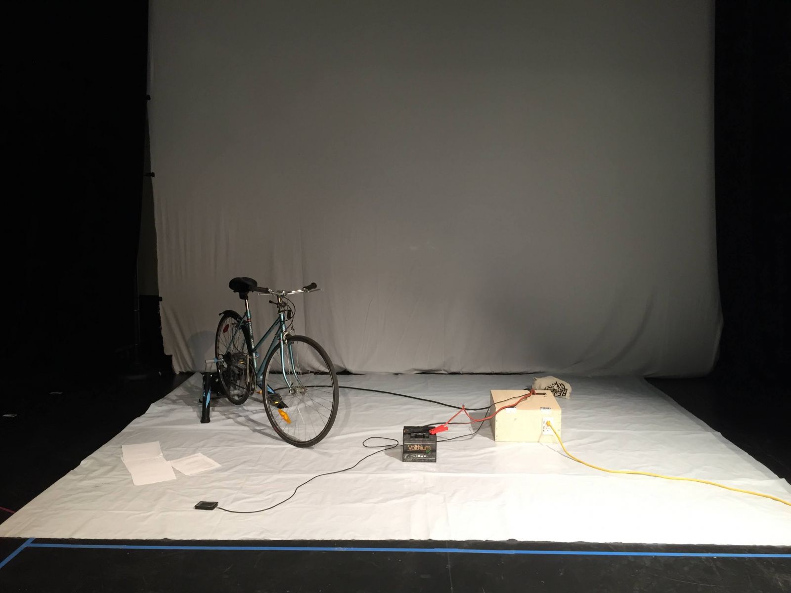 The third instalment in her series on the sacred, Warm up explores our relationship with nature through the lens of our use of resources and overconsumption, and tries to rethink the act of making art within the context of the climate crisis. Thanks to a bicycle that generates the electricity to power the show, the performer explores the principles of degrowth and resilience through a ritual rife with mythological and political overtones. Utilizing all available resources, she interrogates the audience about their feelings and transforms their answers into mantras and guidelines for the new world. In this athletic and musical piece, science, fiction, and science fiction collide to inspire a paradigm shift on both the personal and societal level.